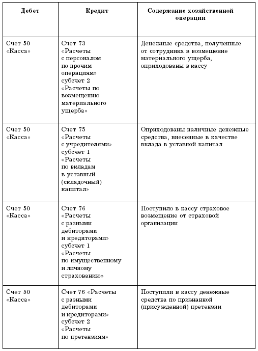 Глава 4. Учет денежных средств 4.1. Учет кассовых операций и денежных документов в торговой организации Практически во всех случаях (за редким исключением) торговые организации имеют дело с наличными денежными средствами. Для учета наличия и движения денежных средств в кассе предприятия предназначен счет 50 «Касса». В Плане счетов бухгалтерского учета рекомендуется использование следующих субсчетов к этому счету: 1) субсчет 1 «Касса организации»; 2) субсчет 2 «Операционная касса»; 3) субсчет 3 «Денежные документы». При необходимости, разумеется, организация вправе открывать и другие субсчета, способствующие наглядности и удобству ведения учета по счету 50 «Касса». Так, если предприятие производит операции с иностранной валютой, то к счету 50 «Касса» открываются соответствующие субсчета для учета операций по каждому виду валюты обособленно. Поступление денежных средств и документов в кассу предприятия отражается по дебету счета 50 «Касса», а их выбытие – по кредиту. Рассмотрим несколько подробнее назначение субсчетов, рекомендованных по счету 50 «Касса». «…На счете 50 субсчет 1 „Касса организации“ учитываются денежные средства в кассе организации… На счете 50 субсчет 2 «Операционная касса» учитывается наличие и движение денежных средств в кассах товарных контор (пристаней) и эксплуатационных участков, остановочных пунктов, речных переправ, судов, билетных и багажных кассах портов (пристаней), вокзалов, кассах хранения билетов, кассах отделений связи и т. п. Он открывается организациями (в частности, организациями транспорта и связи) при необходимости. На счете 50 субсчет 3 «Денежные документы» учитываются находящиеся в кассе организации почтовые марки, марки государственной пошлины, вексельные марки, оплаченные авиабилеты и другие денежные документы. Денежные документы учитываются на счете 50 «Касса» в сумме фактических затрат на приобретение. Аналитический учет денежных документов ведется по их видам» (План счетов бухгалтерского учета финансово-хозяйственной деятельности организаций, утвержденный приказом Минфина РФ от 31 октября 2000 г. № 94н). Таким образом, счет 50 «Касса» субсчет 1 «Касса организации» предназначен для учета всех наличных денежных средств в кассе предприятия. Счет 50 «Касса» субсчет 2 «Операционная касса» рекомендуется в основном для применения в транспортных организациях и на предприятиях связи. Однако некоторые торговые организации, имеющие сеть магазинов или постоянно действующих торговых точек, используют его для учета наличия и движения денежных средств по каждому подразделению. Счет 50 «Касса» субсчет 3 «Денежные документы» используется не для учета наличных денежных средств, а для учета оплаченных денежных документов. Если торговая организация не ведет кассовых операций с денежными документами и иностранной валютой, а также не имеет подразделений, учет по счету «Касса» в такой организации будет осуществляться по счету 50 без открытия субсчетов, так как в них нет необходимости. За сохранность денежных средств и документов в кассе несет ответственность кассир (на небольших торговых предприятиях, не предусматривающих штата бухгалтерии, его функции выполняет бухгалтер). При приеме на работу с кассиром (бухгалтером) должен быть заключен соответствующий договор о полной материальной ответственн