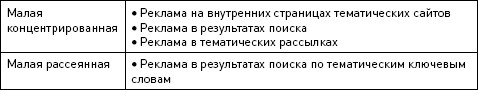 Как влияет тип целевой аудитории на места размещения рекламы? Аудитория потребителей йогуртов – большая рассеянная целевая аудитория, сопоставимая по размеру со всей аудиторией Интернета в стране. Где мы будем размещать рекламу, направленную на эту целевую аудиторию? Конечно, там, где получим максимальный охват за наименьшие деньги и с минимальными издержками на размещение. То есть используем национальные ресурсы, к которым относятся рекламные площадки, собирающие наибольшую аудиторию. Сегодня это: Mail.ru, Яндекс, Одноклассники, Вкон-такте, Rambler, РБК, Лента. ру, Газета. ру. При этом реклама будет размещаться на главных страницах – именно здесь быстрее всего можно получить доступ к миллионной аудитории. Размещение на 2–3 площадках из представленного выше списка позволяет охватить почти весь Интернет. Если же мы привлекаем малую концентрированную аудиторию (например, покупателей туристических путевок в Доминикану), то мы можем ее охватить, разместив рекламу на одном или нескольких тематических сайтах. И реклама так и должна размещаться на тематических сайтах, причем, поскольку аудитория малая, то на внутренних страницах, содержание которых наиболее близко к рекламируемому продукту. Подробнее соотношение типов целевой аудитории и мест размещения рекламы смотрите в табл. 5.1. Таблица 5.1. Зависимость места размещения рекламы от типа целевой аудитории ![]() ![]() Укажем, какую конкретно рекламу мы будем использовать в каждом случае. Используемые виды рекламы тоже зависят от типа целевой аудитории. Для большой целевой аудитории, где объемы рекламы велики, эффективно использование дорогих инструментов Rich-Media и видеорекламы. Стоимость разработки роликов здесь очень велика, и когда она добавляется к небольшому рекламному бюджету, то увеличивает его иногда в разы, делая рекламу неэффективной. А добавляя стоимость изготовления рекламы к большому бюджету, мы почти не влияем на общую стоимость рекламной кампании, а следовательно, на эффективность рекламы в целом. Контекстная реклама идеальна для торговых предложений и очень плохо подходит для имиджевой рекламы. Поэтому ее использование для большой аудитории обычно связано с неоправданно большими затратами на рекламу. Наконец, если у нас малая рассеянная целевая аудитория, то ее нигде, кроме как в результатах поиска, найти невозможно, поэтому мы будем использовать контекстную рекламу и медийную рекламу с поведенческим таргетингом. Подробно соотношения между типом целевой аудитории и используемой рекламой сведены в таблице 5.2.