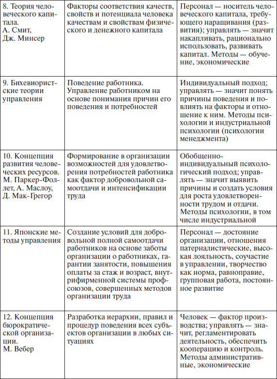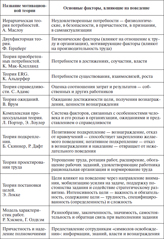 Тема 1 Теории поведения человека в организации 1.1. Менеджерские теории поведения человека в организации 1.2. Мотивационные теории, объясняющие поведение работников организаций 1.3. Теории психологии и психологические модели поведения человека в организации 1.4. Научные исследования и парадоксы 1.5. Ролевое и предпринимательское поведение 1.6. Девиантное поведение, мошенничество, саботаж 1.7. Экономике-психологический подход в организационном поведении 1.1. Менеджерские теории поведения человека в организации XX в. оставил богатое наследство подходов, теорий, точек зрения на то, как понимать и влиять на поведение людей в организации. Будущие и действующие менеджеры всех уровней в процессе освоения науки «Менеджмент» изучают концепции, начиная с научного менеджмента Ф. Тейлора, включая концепции человеческих отношений, теорию человеческого капитала, концепции управления персоналом, развития человеческих ресурсов (японские методы), управления человеческими ресурсами и многие другие. Каждое направление внесло свой вклад в понимание и объяснение причин человеческого поведения и в копилку методов управления этим поведением. Теперь, благодаря достижениям не только науки и практики менеджмента, но и других фундаментальных и прикладных гуманитарных наук – психологии, социологии, социальной психологии, индустриальной психологии, экономической психологии и социологии, психологии менеджмента и т. п., – менеджер как лицо, призванное управлять людьми, и специалист в области управления персоналом как консультант-аналитик вооружены гораздо солиднее, чем столетие назад, и могут гораздо глубже, чем раньше, понимать причины, факторы поведения людей, а методы избирать гораздо более тонкие и точные и из гораздо более широкого круга. Для иллюстрации многообразия и изобилия доказавших свою эффективность подходов, научных концепций, школ в области менеджмента, объясняющих поведение людей в организации, приведем в табл. 1.1 краткие характеристики некоторых из них. Таблица 1.1 Теории, подходы, концепции, школы, относящиеся к управлению персоналом ![]() ![]() ![]() ![]() ![]() ![]() ![]() Данный состав концепций не претендует на всеобъемлемость – любой исследователь может его дополнить, сократить, изменить, опираясь на собственную эрудицию, точку зрения. Так, правомерно назвать еще позитивистский и негативистский подходы. Первый связан с опорой на выявление у работников только позитивных качеств (например, на вакансию подбирается человек, который должен обладать набором неких положительных качеств, при этом не принимается во внимание возможность наличия у этого же человека и ряда негативных качеств). Второй, негативистский подход, наоборот, концентрирует внимание на наличии и выявлении только негативных качеств (например, в основе отбора лежит принцип: «Лишь бы у нового работника не было тех качеств, что у его предшественника, с которым мы намучались»). Многие концепции имеют близкие характеристики, иногда трудно найти принципиальные различия между ними, но такое совпадение аспектов указывает на общность представлений у авторов концепций об объекте исследования и факторах влияния на его поведение. Концепции поддаются классификации, например по хронологическому признаку, по количеству лежащих в основе факторов – от одномодальных, в основе которых нахо