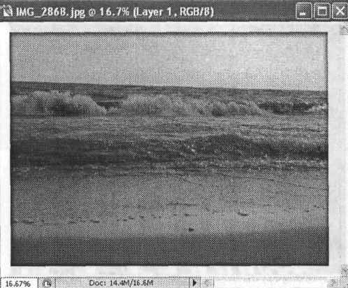 В Adobe Photoshop CS 2 можно выделить несколько пунктов панели Layers (Слои). Для этого щелкайте на них, удерживая нажатой клавишу Ctrl. Также можно щелкнуть на первом пункте, который вы собираетесь выделить, после чего нажать клавишу Shift и щелкнуть на последнем из следующих друг за другом слоев, которые вы собираетесь добавить к выделенной группе. Для выделенного набора слоев можно включить связь между слоями (см. выше). Кроме того, можно синхронно перемещать изображения, находящиеся на связанных слоях, так, как если бы связь была включена, но при этом слои останутся связанными до момента снятия выделения с пунктов панели Layers (Слои). На панели также находится несколько кнопок блокировки, которые позволяют блокировать параметры и режимы редактирования слоя. Кнопки (слева направо) позволяют заблокировать прозрачность слоя, использование рисующих инструментов, перемещение изображения по слою или все параметры одновремен. При включении одного или нескольких режимов блокировки напротив названия слоя выводится символ блокировки. Блокировка изображения позволяет избежать случайногоизменения изображения. Например, можно установить блокировку прозрачности и использовать рисующие инструменты (допустим, Brush (Кисть)), не боясь изменить форму фрагмента изображения, находящегося на слое. Использование эффектов слоя Слоевые эффекты позволяют быстро применять к слоям (кроме фона) различные визуальные эффекты и преобразования. Можно легко заставить изображение отбросить тень или добавить к нему каемку. Дополнительным преимуществом слоевых эффектов перед дополнительными модулями и фильтрами, выполняющими аналогичные функции, является полная обратимость применения эффектов — они не изменяют само изображение, находящееся на слое. Здесь мы рассмотрим эффекты слоев на примере наиболее известного и широко применяемого эффекта — Drop Shadow (Тень). Заодно мы поближе познакомимся с возможностями, которые предоставляет использование слоев изображения. Выполним довольно простую операцию — снабдим фотографию (волны, омывающие песчаный пляж) рамкой, отбрасывающей тень. Исходная фотография показана на рис. 11.9. Для начала создадим в изображении новый слой, на рис 11.10 показана панель Layers (Слои) в этом случае. Рис. 11.10. Панель Layers при подготовке к выполнению задания Затем воспользуйтесь инструментом Marquee (Вьщеление) и выделите прямоугольную область, которая потом будет открытым внутренним пространством рамки. Используйте команду Select • Inverse (Выделение • Инвертировать), для того чтобы поменять ролями выделенную и невыделенную части изображения, — выделенной окажется площадь будущей рамки. Вид окна документа в этот момент показан на рис. 11.11. Рис. 11.11. Выделена область нового, пока еще пустого слоя — будущая рамка Установите в качестве цвета переднего плана белый, выберите инструмент Fill (Заливка). Убедитесь в том, что параметр Opacity (Непрозрачность) для инструмента установлен на 100 %. Щелкните левой клавишей мыши внутри выделенной области, и она будет залита белым цветом. Нажмите комбинацию клавиш Ctrl+D или вызовите команду Select • Deselect (Выделить • Снять выделение), для того чтобы снять ненужную больше границу выделенной области. Почти законченная рамка показана на рис. 11.12. Рис. 11.12. Почти готовая рамка