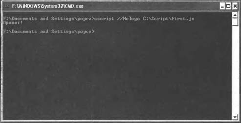 WSH cscript.exe. , , C:\Script\First.js, cscript :\Script\First.js "!" (. 1.3). . 1.3. First.js (cscript.exe)
