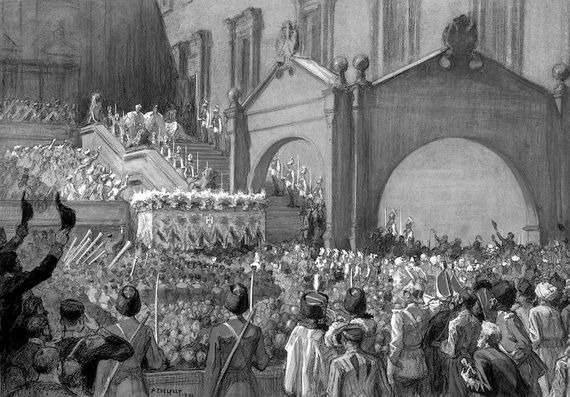 Императорские коронационные регалии и коронационный ритуал К середине XIX в. большая часть «сокровищ» Романовых уже хранилась в банальных процентных бумагах, исправно принося ежегодную прибыль. Однако сокровища Романовых имели и зримую форму, ее наглядным воплощением являлись коронационные регалии московских царей и российских императоров. Формирование комплекса коронационных регалий Вторая половина XV в. была временем завершения объединения русских земель вокруг Москвы и временем начала формирования Московского царства. Такие крупные политические процессы требовали идеологического и политического оформления. Идеология нового царства вылилась в чеканную формулу монаха Филофея: «Первый и второй Рим пали. Москва третий Рим, а четвертому не быть». Зримым же воплощением объединительных политических процессов стала традиция коронации русских государей (великих князей), начало которой было положено коронацией внука Ивана III Дмитрия в 1498 г. Окончательно эта традиция оформляется к середине XVI в., когда в 1547 г. состоялась коронация в Успенском соборе Московского Кремля Ивана IV (он вошел в нашу историю как Грозный). Именно тогда церемония миропомазания стала сердцевиной коронационных торжеств, превращающих обычного человека в помазанника Божьего. Постепенно в ходе последующих коронаций складывается комплекс царских регалий, используемых во время коронационных торжеств, получивший название «большого наряда». Идейной сутью коронационных торжеств в святых храмах Московского Кремля стала идея Божьей благодати, которая снисходила на государей во время процедуры их миропомазания. Собственно отсюда и пошла официальная формулировка «помазанник Божий». ![]() Иоанн IV Процедура коронационных торжеств на протяжении XVII в. при первых Романовых приняла законченные формы и не менялась вплоть до коронации 1682 г., когда одновременно торжественно были помазаны мирром сводные братья Петр I и Иван V. Однако новые политические реалии начала XVIII в. изменили в России очень многое. Затронули эти процессы также и коронационные традиции. Как известно, в конце царствования Петра I очень остро стоял вопрос о престолонаследии. Манифестом 3 февраля 1718 г. сын Петра I от первого брака, царевич Алексей был лишен прав наследства на русский престол. Эти права перешли к Петру Петровичу, сыну царя от второго брака с Екатериной Алексеевной, будущей императрицей Екатериной I. Тогда Петру Петровичу было 3 года, но его уже называли «благороднейшим государем-цесаревичем». После трагической гибели Алексея Петровича в каземате Петропавловской крепости 26 июня 1718 г., право на наследование трона московских царей окончательно закрепляется за Петром Петровичем. Однако 25 апреля 1719 г. Петр Петрович умер. В результате у Петра I остался 4-летний внук, будущий Петр II, которого царь категорически не хотел видеть своим преемником, и дочери от второго брака – Анна и Елизавета, по московским традициям они не могли претендовать на наследование трона. Видимо, именно в 1719 г. у Петра I вызревает идея принятия на себя титула императора и коронации по новому «имперскому стандарту», своей второй жены Екатерины Алексеевны, за спиной которой стояла новая знать во главе с А.Д. Меншиковым. Поводом для столь серьезных изменений должно было стать завершение Северной войны, ее окончание уже о