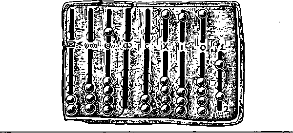 По мнению Плутарха, в Риме совместное, коллективное обучение началось в середине III в. до н. э., когда там открыл свою школу Спурий Карвилий (Плутарх. Римские вопросы, 59). Нет, однако, сомнений, что групповое обучение существовало в Риме уже значительно раньше. Это подтверждают и сообщения Тита Ливия. Как мальчики, так и девочки начинали учиться в семь лет. Девочки из богатых семей — дома, под руководством матери, мальчики имели своего домашнего учителя, а те, кто происходил из семей менее состоятельных, посещали школу. Школы эти были частными, содержали их чаще всего греки-вольноотпущенники. Мальчики, ходившие в школу, были под постоянной опекой воспитателя-педагога: он сопровождал их на занятия, а дома исполнял роль воспитателя и учителя одновременно. Квинтилиан предъявляет к педагогам серьезные требования: прежде всего они должны иметь соответствующее образование, а если у них его нет, то отдавать себе отчет в этом. «Нет ничего хуже людей, мало продвинувшихся в науке дальше начальных сведений, а уже преисполненных ложной уверенности, будто они ученые!» Бронзовая счетная доска. I в. н. э. Поначалу программа обучения была очень скромной, ограничивалась чтением, письмом и элементарными познаниями в арифметике. В дальнейшем программа менялась, иногда существенно, но проследить, когда и в какой степени, невозможно, ибо данные об этом скудны и случайны. Так, например, Цицерон вспоминает, что в детстве он изучал «Законы XII таблиц», которых теперь, в его время, не учит никто (Цицерон. О законах, И, 23; 59). С течением лет программа расширилась и охватывала три стадии обучения. Апулей перечисляет их, говоря о «чашах Муз»: «Первая — чаша учителя чтения, литератора — закладывает основы; вторая — чаша грамматика — оснащает знаниями; третья — чаша ритора — вооружает красноречием. Большинство не идет дальше этих трех кубков» (Апулей. Флориды, XX). Литераторы преподавали, таким образом, в первых классах начальной школы; это были чаще всего греки, образованные рабы или вольноотпущенники, которые самыми примитивными способами учили читать и писать. Так, сначала дети заучивали одно за другим названия букв, еще не зная, как они выглядят, затем приучались складывать буквы в слоги и в слова. Способ этот держался, очевидно, долго (может быть, параллельно с другими), если еще в I в. н. э. Квинтилиан пишет: «Мне, по крайней мере, не нравится хотя бы то, что, как я вижу, маленькие дети часто учат названия и порядок расположения букв раньше, чем вид той или иной из них. Это мешает усвоению букв, ведь дети уже обращают внимание не на то, как выглядят буквы, а на то, что они запомнили прежде. (…) Поэтому лучше всего выучивать буквы, как людей, — сразу и по внешнему облику, и по именам». Оратор-педагог ратует за иной метод обучения грамоте — учить развлекая, приобщать к чтению при помощи игрушечных букв, вырезанных из слоновой кости, «или отыскать что-либо иное, чему больше радовался бы этот возраст и что было бы приятно трогать, рассматривать, называть» (Квинтилиан. Воспитание оратора, I, 1, 24–27). Таким «учебным пособием» могло быть даже… печенье в форме разных букв. Под руководством учителя арифметики — калькулятора — дети учились считать, сначала на пальцах, причем пальцы левой руки служили для обозначения единиц и десятков, а пальцы правой — сотен и тысяч; на более высокой стади