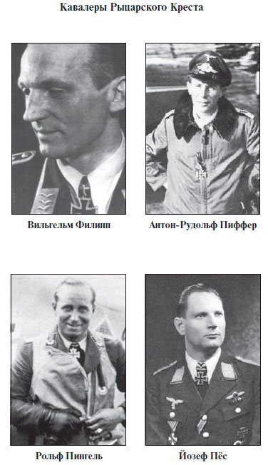 Кавалеры Рыцарского Креста Adolph, Walter – Hptm. – JG1, JG27, JG26 – 25 Родился 11.06.1913 г. в местечке Фонтанелле, около г. Бакэу, Румыния. Осенью 1937 г. лейтенант Вальтер Адольф прибыл в Испанию и был включен в 1.J/88 «Легиона “Кондор”». 30 декабря того же года он сбил республиканский И-15. Весной 1938 г. он вернулся в Германию и потом в звании обер-лейтенанта был назначен командиром 1./JG130 (с 01.05.1939 г. – 2./JG1). Первую победу в ходе Второй мировой войны Адольф одержал 01.10.1939 г., сбив в районе г. Оснабрюкк «Бленхейм» из 139 Sqdn. RAF. В ходе французской кампании в мае – июне 1940 г. на его счету было пять побед. 12 мая он в течение пяти минут сбил три «Бленхейма» все из того же из 139 Sqdn. RAF, а 6 июня – два французских бомбардировщика LeO 451. 9 июля его эскадрилью переименовали в 8./JG27. Сбив вечером 11 сентября два «Спитфайр», Адольф преодолел рубеж в десять побед. 4 октября его в звании гауптмана назначили командиром II./JG26. 8 ноября он одержал 15-ю победу, и затем 13 ноября был награжден RK. Затем 17.06–16.08.1941 г. он сбил над Северной Францией и Ла-Маншем еще семь «Спитфайров», «Харрикейн» и «Бленхейм». 18 сентября его FW-190A-1 W.Nr.28 был сбит в бою со «Спитфайрами» из 41 Sqdn. RAF над Северным морем, в 30 км северо-западнее г. Остенде, Бельгия. Спустя три дня тело Адольфа было выброшено волнами на бельгийское побережье. Его «Фокке-Вульф» стал первым самолетом этого типа, потерянным Люфтваффе в бою. Всего он совершил 79 боевых вылетов. Ahnert, Heinrich-Wilhelm – Obfw. – JG52 – 57 Родился 29.04.1915 г. в местечке Цигельхайм, около г. Альтенбург. Первоначально Генрих-Вильгельм Анерт был пилотом самолета-разведчика и участвовал в польской и французской кампаниях. Затем он прошел переподготовку в качестве истребителя и весной 1941 г. в звании фельдфебеля прибыл в 3./JG52. Первую победу Анерт одержал 9 июня того же года, сбив над Северным морем, у побережья Голландии, британский «Бленхейм». Затем в сентябре он одержал еще три победы. С конца сентября 1941 г. I./JG52 действовала на Восточном фронте. Там Анерт, которому 03.01.1942 г. присвоили звание обер-фельдфебеля, одержал еще 53 победы, причем из них 30 – в мае – июне 1942 г. 16 июня его наградили DK-G. Ранним утром 23 августа он сбил Ил-2 – это была его 57-я и, как оказалось, последняя победа. В этот же день он получил RK, но долго радоваться ему не пришлось. Позднее в тот же день его Bf-109G-2 W.Nr.13508 в ходе атаки группы Пе-2 в районе поселка Коптево был сбит ответным огнем бортстрелков, и Анерт погиб. Albrecht, Egon – Hptm. – ZG1, ZG76, SG210, JG76 – 25 Родился 19.05.1918 г. в г. Куритиба, Бразилия. После окончания летной подготовки лейтенант Эгон Альбрехт весной 1940 г. прибыл в 6./ZG1. 26 июня того же года эскадрилью переименовали в 9./ZG76, которая затем 24.04.1941 г. получила новое обозначение 6./SKG210. С 22 июня Альбрехт участвовал в боях на Восточном фронте. 04.01.1942 г. эскадрилье вернули прежнее обозначение – 6./ZG1. 12 июня того же года Альбрехт был назначен командиром 1./ZG1. Тем временем его счет постепенно рос. Так, 8 февраля он сбил Р-5, 4 июля – два Як-1, 26 июля – Як-1 и И-153, 1 августа – И-16, 23 августа – И-153, 24 августа – ДБ-3, 31 октября – И-153 и 5 ноября – И-16. 3 декабря его наградили DK-G. 20.05.1943 г. Альбрехту присвоили звание обер-лейтенанта, а затем 25 мая он получил RK. К этому моменту он сбил 15 самолетов и еще одиннадцать уничтожил на земле. Кроме того, в ходе штурмовых атак он уничтожил на земле 254 автомашины, 12 позиций артиллерийских орудий, восемь позиций зениток и три паровоза. Затем 9 октября