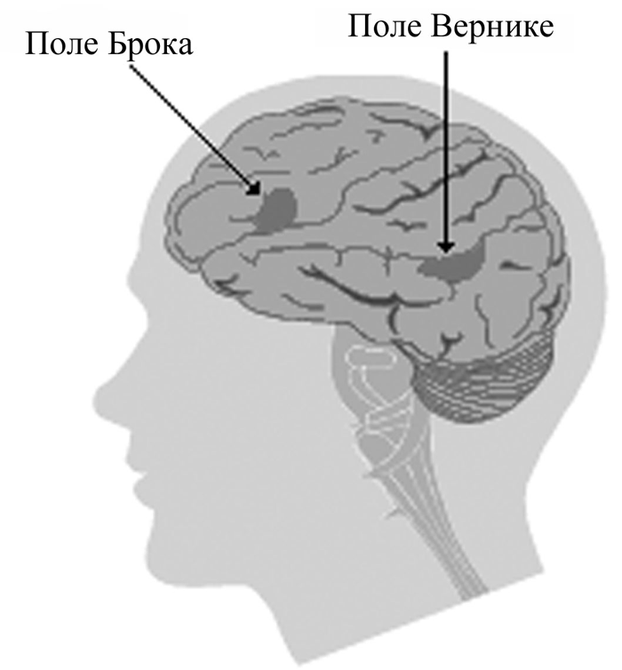 Рис. 7.2. Расположение основных языковых центров в мозге человека. Если понимание эволюции мозга важно для оценки способности к языковому поведению в целом, то изучение строения дыхательных и голосовых органов ископаемых гоминид проливает свет на развитие речевой способности, необходимой для нашего вербально-звукового языка.[61] Одно из направлений такого рода исследований, получившее название палеоларингологии, имеет целью реконструировать верхние дыхательные пути наших предков. Реконструкции возможны благодаря тому, что анатомия основания черепа (базикраниума) в какой-то мере отражает некоторые особенности мягких тканей верхних дыхательных путей. В частности, существует связь между степенью изогнутости основания черепа и положением гортани в горле: при слабо изогнутом основании гортань расположена высоко, а при сильно изогнутом значительно ниже. Последняя черта, т. е. низкое расположение гортани, характерна лишь для людей. Правда, у детей до двух лет гортань расположена так же высоко как у животных (что, кстати, дает им и животным возможность есть и дышать практически одновременно), и лишь на третьем году жизни она начинает опускаться (что позволяет лучше и разнообразнее артикулировать звуки, но создает риск подавиться). С целью реконструировать изменения положения гортани в процессе эволюции человека изучались базикраниумы ископаемых гоминид. Было установлено, что австралопитеки в этом отношении гораздо ближе к человекообразным обезьянам, чем к современным людям. Следовательно, их голосовой репертуар был, скорее всего, очень ограничен. Изменения в современном направлении начались на стадии человека прямоходящего: анализ черепа KNM-ER 3733 возрастом около 1,5 млн. лет выявил зачаточный изгиб базикраниума. На черепах ранних палеоантропов возрастом около полумиллиона лет фиксируется уже полный изгиб, близкий к тому, что характерен для современных людей. Несколько сложнее обстоит дело с неандертальцами, но, скорее всего, и у них гортань располагалась достаточно низко для того, чтобы они могли произносить все необходимые для членораздельной речи звуки. К этой теме мы вновь вернемся в следующей главе. Еще один орган, связанный с речевой деятельностью — это диафрагма, обеспечивающая точный контроль дыхания, необходимый для быстрой членораздельной речи. У современных людей одним из следствий такой функции диафрагмы является рост числа тел нервных клеток в спинном мозге грудных позвонков, что имеет результатом расширение позвоночного канала грудного отдела по сравнению с другими приматами. Возможно, такое расширение произошло уже у архантропов, на что указывают некоторые находки с восточного берега озера Туркана. Правда, есть и материалы, противоречащие такому выводу. В частности, судя по грудным позвонкам скелета из Нариокотоме в Восточной Африке (возраст около 1,6 млн. лет), его обладатель в интересующем нас отношении был ближе к обезьянам, чем к современным людям. Напротив, неандертальцы по рассматриваемому признаку практически не отличаются от нас. Большое значение для развития речевых способностей ископаемых гоминид имели, конечно, изменения размеров и строения челюстей и ротовой полости — органов, принимающих самое непосредственное участие в артикуляции звуков. Громоздкие, тяжелые челюсти большинства ранни