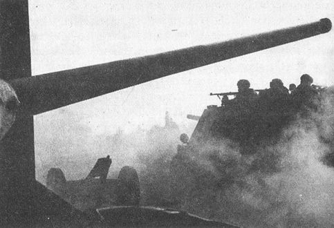 О том, насколько ожесточенными были бои в те дни, говорит хотя бы такой показатель: только за пять дней мартовских боев 1945 года немецкими саперами 6-й танковой армии (а не всей группы армий!) было обезврежено около 15 тысяч мин. Среди обезвреженных мин встречались и немецкие. Скорее всего они попали в руки Красной Армии со складов новых болгарских и румынских союзников. Советское танковое наступление Одновременно с этим части III танкового корпуса (3-я танковая и 356-я пехотная дивизии) смогли незначительно продвинуться вперед по обе стороны от Шерегейеша. В это же время входившая в состав того же корпуса 1-я танковая дивизия смогла захватить на южном берегу озера Веленце населенные пункты Динньеш и Гардонь. В принципе, эта дивизия повторяла путь, по которому в январе уже однажды следовала танковая дивизия «Мертвая голова». На участке фронта, который удерживался IV танковым корпусом СС (к северу от Секешфехервара), в тот день не происходило никаких крупных боевых действий. Изрядная задержка и фактическая остановка немецкого наступления, вызванная очередным заболачиванием местности, непроходимыми дорогами, была на руку советскому командованию. Красная Армия получила время, чтобы усилить свои оборонительные позиции. В первую очередь это касалось пространства между каналом Шарвиз и озером Веленце. Командование группы армий «Юг» понимало, что ситуация складывалась не в его пользу, а потому искало наиболее эффективные решения. Так, например, была начата подготовка к наступлению 23-й танковой дивизии на Шарбогард, которое должно было помочь II танковому корпусу СС, завязшему в продолжительных боях на «южном выступе». Одновременно с этим тактический успех 1-й танковой дивизии должен был позволить в полную силу применить III танковый корпус. По этой причине командование армейской группы Балка получило приказ максимально быстро подтянуть 6-ю танковую дивизию к позициям III танкового корпуса. Она должна была находиться в оперативном резерве, в то время как 1-я и 3-я танковые дивизии должны были начать наступление в юго-восточном направлении на Адонь. Их главной целью была Перката и последующий прорыв к Дунаю. В то же самое время командование 2-й танковой армии всерьез задумалось над тем, стоило ли продолжать наступление в юго-восточном направлении, к Печу, чтобы встретиться там с войсками Главнокомандующего на юго-востоке. Учитывая, что последние так и не смогли прорваться на сколько-нибудь значимое расстояние от реки Драва, весьма логичным было наступление в северо-восточном направлении, где части 2-й танковой армии могли встретиться с дивизиями I кавалерийского корпуса. Вечером этого дня в разговоре с генералом Вёлером генерал-полковник Гудериан подтвердил, что «в первую очередь надо искать объединения с кавалерийским корпусом». «Подобного мнения придерживается и сам фюрер», — подытожил Гудериан. А вот насчет целесообразности использования армейской группой Балка IV танкового корпуса СС у Гудериана, судя по всему, существовали изрядные сомнения. На вопрос, какие резервы имелись у IV танкового корпуса СС, командующий группой армий поспешил заверить, что у дивизий «Викинг» и «Мертвая голова» имелось достаточное количество резервов. Гудериан подчеркнул, что на наступление силами неполных дивизий можно было бы решиться, если бы к северу о