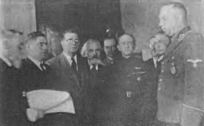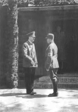 Иллюстрации Линия обороны перед основными защитными сооружениями «Вервольфа», лето 1942 г. Внешний вид лесного массива, где размещался «Вервольф», лето 1942 г. Автомобиль Гитлера на аллее возле его дома. «Вервольф», июль 1942 г. Блочные дома «Вервольфа», июль 1942 г. Внешний вид одного из домов «Вервольфа», где размещалась охрана Гитлера. «Вервольф», июль 1942 г. Бункер Гитлера. «Вервольф», июль 1942 г. Рабочий кабинет Гитлера. «Вервольф», 1942 г. Внутренний вид помещений ставки Гитлера «Вервольф», Июль 1942 г. Финская сауна в одном из зданий «Вервольфа», июль 1942 г. Внутренний вид комнаты для просмотра кинохроники. «Вервольф», июль 1942 г. Радиотелефонная станция «Вервольфа», июль 1942 г. Летное поле, «Вервольф», июнь 1942 г. Совещание с лётчиками из группы сопровождения и сотрудниками службы безопасности, «Вервольф», июнь 1942 г. Представители оккупационных властей встречают Гитлера в г. Виннице. Июль 1942 г. Прием в Винницком магистрате председателем самоуправления представителей немецкой администрации, июль 1942 г. Прибытие Гитлера в «Вервольф», июль 1942 г. Прибытие Гитлера в «Вервольф», октябрь 1942 г. Гитлер с генералами и офицерами осматривает одну из огневых позиций «Вервольфа», июль 1942 г. Гитлер и Кейтель с офицерами осматривают строительство огневых рубежей «Вервольфа», июль 1942 г. Гитлер беседует с комендантом «Вервольфа», сентябрь 1942 г. Гитлер с представителями командования вермахта возле бассейна. На заднем плане виден деревянный домик Гитлера. «Вервольф», июль 1942 г. Встреча Гитлера с Борманом в присутствии военных. «Вервольф», июль 1942 г. Государственный визит румынского посла. «Вервольф», 1942 г. Геринг устраивает прием одному из воздушных асов Германии. «Вервольф», конец июля 1942 г. Адмирал Канарис во время посещения ставки «Вервольф», 1942 г. Гитлер среди офицеров. «Вервольф», июль 1942 г. Кейтель, Гитлер, Гальдер (слева направо), Шмундт на территории «Вервольфа», июль 1942 г. Гитлер и Борман в «Вервольфе» рассматривают фотографии, лето 1942 г. Гитлер и Борман на прогулке в «Вервольфе», лето 1942 г. Гитлер, Гальдер, Кейтель рассматривают ситуацию на восточном фронте. «Вервольф», лето 1942 г. Встреча Гитлера с Гиммлером. «Вервольф», август 1942 г. Гитлер возле своего дома с генералами вермахта. «Вервольф», август 1942 г. Анализ ситуации под Ленинградом. Докладывает Гальдер. «Вервольф», осень 1942 г. Гитлер в сопровождении шеф-адъютанта вермахта Шмундта адъютанта флота фон Путткамера и двух охранников эскорт-команды СС. «Вервольф», август 1943 г. Руины «Вервольфа» сегодня. Фельдмаршал Клюге. Фельдмаршал Лист. Фельдмаршал Манштейн. Фельдмаршал Паулюс. Фельдмаршал Роммель. Фельдмаршал Лееб. Строители ставок. Лео Мюллер, Фридрих Классен и Зигфрид Шмельхер (слева). Арвид Харнак («Корсиканец»). Стенес («Итальянец»). Харро Шульце-Бойзен («Старшина»). Леман («Брайтенбах»). Винница. Асфальтированная дорога от шоссе к лесу (западная опушка массива, в котором находилась ставка Гитлера), март 1944 год. Вид леса внутри «Вервольфа», март 1944 год. Винница. Ворота главного входа в центральную зону ставки. Справа — опрокинутая будка для часовых, март 1944 года. Винница. «Декорации» у входа в офицерскую столовую. Винница. Остатки жилых домов для офицеров и генералов, проживающих в центральной зоне, март 1944 г. Винница. Место комендатуры ставки Гитлера, март 1944 г. Винница. Спирали Бруно и забор из колючей пр