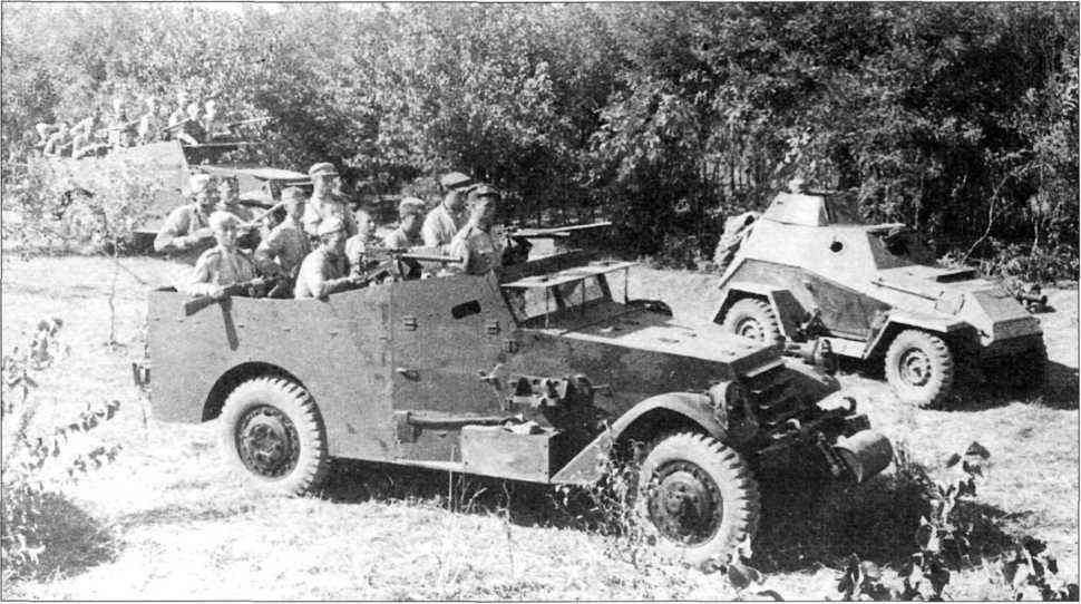 Бронетранспортёр МЗА1 «Скаут кар» гвардии подполковника И. И. Гусаковского (слева), командира 44-й танковой бригады 1-й танковой армии 4-го Украинского фронта, январь 1944 года.