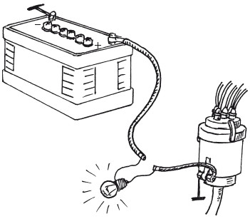 Чтобы выявить неполадки, нужно 5—10 раз нажать на педаль газа для добавления топлива ускорительным насосом, подождать примерно полминуты, а затем запустить двигатель. 1. Запуск двигателя затруднен из-за засорения воздушного и топливного жиклеров холостого хода. Следует снять крышку карбюратора, отвернуть воздушные жиклеры и извлечь из-под них эмульсионные трубки. Их нужно промыть в бензине и очистить проходное сечение жиклеров при помощи заостренной спички, предварительно смоченной в ацетоне. Топливные каналы надо продуть сжатым воздухом. 2. Нарушен уровень топлива в поплавковой камере из-за бедной или богатой смеси. Двигатель не запускается при низком уровне топлива. При высоком его уровне двигатель также не запускается, так как происходит «пересос» топлива. 3. Негерметичность поплавка. Поплавок снять и резко потрясти его. Если в него попал бензин, то, вероятно, в нем есть трещина. Для того чтобы найти трещину на поверхности поплавка, необходимо высверлить отверстие диаметром 1,5 мм на одном конце латунного поплавка и слегка дунуть в него. Бензин слить через просверленное отверстие и запаять трещину при помощи паяльника тонким слоем олова. При паянии поплавка следует сохранить его начальный вес. Подгибанием язычка отрегулировать ход иглы клапана, при этом одновременно регулировать ограничителем хода поплавка зазор между торцом запорной иглы и язычком. 4. Негерметичность игольчатого запорного клапана. С карбюратора снять крышку и проверить работу запорного клапана. Седло клапана подтянуть, крышку карбюратора повернуть таким образом, чтобы игла клапана закрыла его седло. Ртом всасывать воздух через патрубок подвода топлива. Клапан герметичен, если язык прилипает. Новый клапан в собранном виде поставить в том случае, если его герметичность нарушена. у-Уровень топлива в поплавковой камере регулируется согласно инструкции по эксплуатации автомобиля и зависит от его марки. 5. Происходит подсос между впускным трубопроводом и карбюратором. В этом случае следует заменить (при необходимости) уплотнительные прокладки и подтянуть гайки, которыми крепится карбюратор к впускному трубопроводу. Внезапная остановка двигателя Проблема – неисправность системы зажигания 1. Неисправность катушки зажигания. Ее можно установить при помощи контрольной лампы. ![]() Рисунок 30. Проверка катушки зажигания Для этого один конец провода контрольной лампы при включенном зажигании необходимо соединить с массой, а к безымянной клемме прикоснуться вторым концом. Если лампа не горит, а включается только при касании клеммы «Б», в этом случае, вероятнее всего, произошел обрыв в первичной обмотке катушки, и ее следует заменить (рис. 30). 2. Неисправность бесконтактного датчика в распределителе зажигания или коммутатора. ![]() Рисунок 31. Проверка коммутатора и бесконтактного датчика распределителя зажигания В этом случае на катушку зажигания не поступают импульсы тока. Тогда от нее нужно отсоединить провод, который идет от клеммы «1» коммутатора, а наконечник провода подключить к контрольной лампе. К клемме «+Б» катушки зажигания подключить другой вывод контрольной лампы. Зажигание включить и стартером проверить коленчатый вал. Цепь низкого напряжения исправна, если лампа мигает, т. е. коммутатор посылает импульсы на катушку зажигания. Если лампа не ми