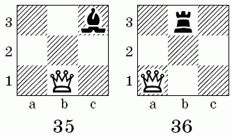 Глава 10 Ферзь против ладьи и слона – Теперь Пиноккио играет белым ферзем, а Гурвинек – черным слоном, – сказал Незнайка и расставил на шахматной доске такое положение: ![]() – Ха, я этого черного слона сразу поймаю! – радостно крикнул Пиноккио и передвинул ферзя на одну клеточку, в ближний черный угол. – Куда теперь твоему слону идти? Некуда! Везде я его съем!!! – радовался Пиноккио. Гурвинек задумался, усмехнулся и побил черным слоном белого ферзя! Наискосок. Вот так: ![]() – Я не так хотел сыграть! – закричал Пиноккио и выхватил ферзя из рук Гурвинека. – Я лучше нападу на слона не наискосок, а по прямой. – Пиноккио снова расставил исходное положение и переместил ферзя в дальний левый угол. Вот так: ![]() Гурвинек заметил, что его слону грозит беда, и увел его в центр. Вот так: ![]() – Не уйдешь, – проворчал Пиноккио и поставил ферзя по соседству со слоном. Вот так: ![]() А Гурвинек опять вернулся слоном в угол. Попробуй догони! Долго ловил белый ферзь черного слона, но поймать не смог. Тогда Пиноккио отобрал у Гурвинека слона, а взамен поставил на шахматную доску черную ладью. ![]() – ?aвай поиграем: ферзь на ладью. Уж сейчас-то я тебя обыграю, – сказал Пиноккио и, не раздумывая, сыграл белым ферзем в левый дальний угол. Вот так: ![]() Сыграл и сразу заметил, что черная ладья побьет белого ферзя. – Ой, я не так, не так пойду, – испугался Пиноккио. – Я понял, на ладью ферзь должен нападать наискосок. Тогда ферзь ладью атакует, а ладья ферзя нет! – И Пиноккио поставил ферзя в левый ближний угол. Вот так (см. следующую стр.) Но и Гурвинек передвинул свою черную ладью на одну клетку налево и так вывел ее из-под боя. А Пиноккио переместил белого ферзя по линии вверх на одну клетку, чтобы опять напасть на ладью. ![]() А Гурвинек снова передвинул ладью на клетку влево… Не смог обыграть Гурвинека Пиноккио. – Непонятно. Ферзь хитрее и ладьи, и слона, а поймать их не может. Убегают и слон, и ладья из-под боя, – удивлялся Пиноккио. – Убегают, – кивал Незнайка. – Слишком эта доска велика. Было бы в ней поменьше полей, не спастись тогда ни слону, ни ладье. Советы родителямПоиграйте с ребенком ферзем против ладьи, ладьей против ферзя, ферзем против слона, слоном против ферзя на шахматной доске «восемь полей на восемь». Как ладье, так и слону нельзя нападать на ферзя – он их побьет. Ферзь же может атаковать ладью по диагонали, а слона – по линиям. Но хотя ферзь гораздо сильнее и ладьи, и слона, на классической шахматной доске он эти фигуры поймать не в состоянии – и у ладьи, и у слона имеется достаточно полей для отхода, – они, как и ферзь, фигуры дальнобойные. Можете объяснить ребенку, что ладью и ферзя называют тяжелыми фигурами, а слона (и коня) – легкими фигурами. Опыт борьбы ферзем против ферзя помогает детям и слона с ладьей не ставить под бой ферзя. Гораздо сложнее сражаться слону и ладье против ферзя на фрагментах шахматной доски. Так, слон вообще не в состоянии избежать разящего удара ферзя ни на одном из 6 фрагментов доски. Ладья же всегда убежит от ферзя только на фрагменте шахматной доски «четыре клетки на четыре», на фрагменте же «три поля на четыре» ничья достигается только в том случае, если ладье удается пробраться на одну из крайних вертикалей. Как это ни парадоксально, если ладья занимает центральные поля, ферзь при своем ходе всегда способен ее «укротить» и побить. Для игры с 