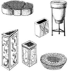 КОМПОЗИЦИИ ИЗ РАСТЕНИЙ ОФОРМЛЕНИЕ ОКОН С точки зрения освещения окна – лучшее место для растений. Это утверждение весьма спорно. Конечно, солнечный свет, который проникает сквозь оконные стекла нужен растениям. Но в нем отсутствуют ультрафиолетовые лучи. С другой стороны, разросшиеся на окне растения не дают свету проникать в комнаты. Как быть, если вы хотите сделать квартиру удобной для цветов и одновременно с этим не лишать себя значительной доли солнечного света? Размещайте на подоконнике одно-два растения. Остальные можно расположить возле окна, создавая обрамление оконного проема, и тем самым, зрительно расширяя его. По боковым сторонам можно разместить вертикальные стойки для ампельных растений. Если в стойке более 3 кашпо, то ампельные можно с успехом чередовать с красивоцветущими растениями, которые не имеют длинного стебля. Например, плющ будет прекрасно смотреться над цветущей сенполией или цикламеном. ![]() Рис. 37. Оформление окон 1 Растения можно размещать и под окном. Это идеальное место для подиума или цветочницы, в которой вы будете содержать высокое растение (такое как драцена или пальма). Почву около ствола можно закрыть покровными или ползучими растениями. Но можно просто разместить красивую гальку или камешки. Если же в напольном кашпо для такого растения будет видна почва, то это не прибавит декоративности ни растению, ни помещению, в котором оно растет. Место перед окном хорошо освещено, но есть одна проблема – там же часто располагаются радиаторы центрального отопления. Если это так, то многие растения не будут расти. Правда, можно установить растение чуть сбоку, или предусмотреть увлажнение, подставив под радиатор поддон с водой. Если это будет возможно сделать без ущерба для интерьера – то, пожалуйста. Проявите фантазию, и эта проблема будет решена. Можно соорудить или приобрести передвижную или стационарную цветочницу, в которой вы установите растения, подобрав их согласно своему вкусу. Не ставьте в ряд одинаковые растения – выберите одно, самое высокое, и вокруг него составьте композицию, каждое растение которой должно быть особенным. Одно, например, раскидистыми листьями прикроет почву, другое будет обильно и красиво цвести. Удачно дополнят композицию ампельные, покровные или ползучие растения. Такие цветочницы могут быть в виде подиумов, лесенок или целых оазисов с фонтанчиком или мини-бассейном. ![]() Рис. 38. Композиция в цветочнице Уместны столики с террариумами и аквариумами разных форм, установленные перед окном. В этом случае тот микроклимат, который создается в закрытом объеме, не ухудшается от радиаторов столь сильно, как в том случае, если растения расположены в горшках, плошках или кашпо. Зато такой столик – традиционное место для размещения красивого подноса с бонсай или ландшафтной композицией любого типа. Помещение преображается, украшенное таким элементом дизайна. С помощью ампельных растений, о которых мы говорили, можно устроить «зеленые гардины» – пусть их плети обрамляют окно, свисая или располагаясь по периметру. Для этого подойдут кронштейны или стойки около окна, на которых крепятся горшки (а лучше – кашпо) с растениями. Неплохо смотрятся и подвесные кашпо, выполненные в самых различных стилях из самых разных материалов. Это могут быть и кованые изделия, и пластиковые подв