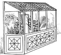 ЦВЕТУЩИЕ СТЕНКИ НА БАЛКОНЕ Если вы устраиваете зимний сад на балконе, вам как раз можно вспомнить о том, что существует практика выращивания растений на различных субстратах, которые пропитаны питательными растворами. Преимуществом выращивания растений без почвы является то, что хозяин не должен тащить возами землю в сад или теплицу, растения не нужно пересаживать, сам процесс выглядит более «чистым», что особенно импонирует женщинам. Но, кроме этого, есть еще конструктивная прочность вашего балкона, которая не беспредельна. Застекленный балкон уже утяжелен, а грунт – субстанция не легкая. Так что преимущества – налицо. Первая попытка выращивать растения в водных растворах без почвы была сделана более 250 лет назад. Но только к 80-м годам прошлого века были научно разработаны растворы и субстраты для выращивания растений. С тех пор гидропоника стала бурно и быстро развиваться, и ничто не мешает вам попробовать вырастить что-нибудь таким способом. Тем более, что в условиях квартиры чрезвычайно важное соображение – экономия места. На своем балконе, оборудованном под зимний сад, или нет, можно устроить настоящие висячие сады на вертикальных стенках из мха. Принцип создания таких конструкций и их использование для выращивания растений прост. Нужно укрепить на подходящей основе, и удерживать в вертикальном положении влагоемкий органический субстрат, который должен одновременно служить источником питательного раствора и средой для роста корней растений. Наполнителем может служить мох. Его периодически увлажняют готовым питательным раствором. Посадку растений или посев семян проводят сквозь отверстия в основе на всех доступных вертикальных и горизонтальных поверхностях. ![]() Рис. 81. Застекленный балкон с цветами Это может быть не только стенка, но и цилиндрическое образование – бочка, кадка, канистра. В стенках бочки нужно просверлить отверстия диаметром 4–5 см на расстоянии 15–20 см одно от другого. В днище пробивается дренажное отверстие. На дно посуды нужно уложить дренаж – керамзит, или другой легкий наполнитель (помним, что балкон не выдерживает бесконечно тяжелых конструкций. В середину вставляем пучок трубок, прутьев или веток, которые будут служить капиллярами, и заполняем остальное пространство субстратом (мхом). Остается поливать питательным раствором растения, которые высаживают в отверстия стенок. Очень скоро зелень и цветы покроют бочку полностью. ![]() Рис. 82. Бочка с цветущими растениями Стенки же удобно крепить на сетке, легкой металлической или пластиковой. Простая идея, но она дает огромные возможности. Формы стенок могут быть любыми – от стенки на наружной стороне балкона до причудливой скульптуры, увитой растениями. Чтобы использовать ее на террасе в качестве цветущей ширмы в соответствии с положением солнца, можно соорудить несколько таких конструкций-модулей, которые можно составлять вместе любыми способами, каждый раз меняя картину озеленения. ![]() Рис. 83. Контейнеры с экраном для «зеленой ширмы» СУБСТРАТЫ И НАПОЛНИТЕЛИ Каким требованиям должен отвечать материал, используемый в качестве субстрата? Это должно быть вещество со следующими свойствами: а) с довольно крупными частицами, которые не высыпались бы между рейками обрешетки или между ячейками сетки; б) способные поглощать и удерживать большо
