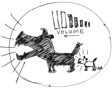 Глава 24. Лай. Настраиваем звук Приходилось ли вам ворочаться по ночам оттого, что на улице или за стеной лает собака? Случалось ли вам буквально перекрикивать своего пса, говоря по телефону? Сколько времени вы потратили на то, чтобы оттащить истерично лающую собаку от дерева, на котором сидит кошка? Если, заводя собаку, вы не преследовали своей целью сводить с ума бабушку с верхнего этажа и семейную пару с новорожденными близнецами за соседней стенкой, то сумасшедший и неконтролируемый лай вашей собаки может обернуться серьезной проблемой не только для несчастных соседей, но и для вас. Если же эта дурная привычка все-таки начала у вашей собаки активно развиваться, то это нужно срочно «лечить». Несмотря на то что лай – это естественное самовыражение вашей собаки, мы не должны привыкать к тому, что она самовыражается настолько громко. Мы уже рассказывали о том, как «разговаривает» собака, начиная от лая и заканчивая скулением. Всего же гамма собачьих звуков может состоять не менее чем из сорока различных значений. Например, собака использует один вид рычания, если она защищается, и немножко другой оттенок рычания, если она собирается напасть. Полный же репертуар звукового общения у собак включает ворчание, вой, щелканье зубами, визг, вопли, рычание, пыхтение как один из способов приглашения к игре и что-то вроде человеческого кашля, используемого иногда при защите или в качестве угрозы нападения. Но все эти способы выражения просто меркнут по сравнению с лаем.