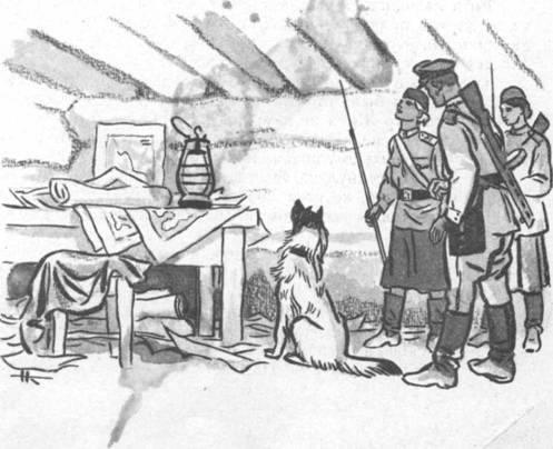 8 МИНЁРЫ ИДУТ ВПЕРЁД В январе 1944 года девушки-минёры стояли под Пулковом. Здесь и началось наступление наших войск. Готовились к нему долго, а всё равно бой вспыхнул словно бы неожиданно. Земля вдруг разом начала извергать огонь и гром, содрогаясь и дымя. Две с половиной тысячи орудий сто минут били по врагу. Они выпустили за это время четверть миллиона снарядов. И этот ураган огня был лишь подготовкой к наступлению. Вслед за ним обрушили на фашистов свой удар пехота и танки. Наступавшие врубались, вклинивались в расположение врага. Он сопротивлялся со злостью и упорством. Каждая пядь земли давалась дорогой ценой. Но порыв наступающих не ослабевал, и ширилось пространство, откуда советские солдаты изгнали оккупантов. Саперы двигались вслед за танками и пехотой. Надо было открывать дороги, чтобы доставлять тем, кто шёл вперёд, всё необходимое для боя, для жизни. Нельзя наступать, не получая снарядов, патронов, бензина, хлеба, лекарств. А как всё это доставить, если дороги непроезжие? Открывать дороги — это значило прежде всего снимать с них мины. Отделение Риты Меньшагиной работало на шоссе, идущем вблизи берега Финского залива к Стрельне и Петродворцу. Всеми владело необычайно радостное чувство. Они ведь очищали места, где долго хозяйничал враг. Это чувство делало желанным тяжёлый, опасный труд. Рита шла по шоссе с Жуком. Как всегда, он отлично чувствовал настроение хозяйки, работал старательно и охотно. Он то и дело тыкался в снег своей угольно-чёрной мордой, затем поворачивался к хозяйке, поглядывал на неё умными и преданными глазами. Только морда, глаза да кончики ушей у Жука были чёрными. Крупный, лохматый пёс был похож на кавказскую овчарку. Спину, лапы, живот и хвост покрывала густая, белая с желтоватым отливом шерсть. Она завивалась большими кольцами. Белая шерсть делала собаку почти неразличимой на заснеженной дороге. А сам Жук хорошо видел и чуял всё, что было перед ним. — Хитрый пёс, видишь, какой маскировкой обзавёлся, не хуже, чем у нас, — говорили проходившие мимо солдаты и показывали на белую шерсть Жука. Сами они были в маскировочных халатах. — Умный, — отвечала им Рита. — Отличный минёр. А масть, конечно, подходящая для зимы. Но он себя и летом покажет. Шоссе было заминировано беспорядочно. Это затрудняло поиск. Но отделение Риты уже прошло в тот день большой путь. Снятые мины лежали вдоль шоссе штабелями. Мины были тяжёлые, противотанковые. Потом Жук обнаружил и участок мелких противопехотных мин. Они стояли очень густо. Рита отвела собаку в сторонку, привязала к столбу. Снимать найденные мины следовало одной, собака могла в этом только помешать. Рита колола землю щупом — тонким металлическим стержнем на двухметровой палке. Обнаруживала одну за другой коробочки со взрывчаткой и осторожно извлекала их, расчистив предварительно снег вокруг. Работа у неё ладилась. Рита думала, что скоро уже разделается с этим неприятным участком. И тут совсем рядом раздался взрыв! Через мгновение Рита почувствовала, как что-то мягко, но сильно толкнуло её в ноги. Это был Жук. Услышав взрыв, он рванулся к ней с такой силой, что оборвал поводок… «ПОРЧЕНАЯ» СОБАКА Многие в батальоне удивлялись, почему Рита Меньшагина взяла себе Жука. Рита была уже сержантом, командиром отделения. Она занималась дрессировкой и могла выбирать собак. А Жука в пито