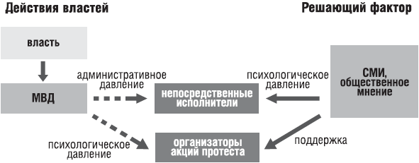 Стратегия и тактика протестной кампании Действие на опережение Эффективное применение «майданных» технологий возможно только в рамках наступательной стратегии. Тот, кто ограничивается реагированием на активность противника, заведомо ставит себя в положение проигравшего. Это один из главных пунктов методик осуществления «бархатных революций». Развитие кампании протеста в Крыму полностью подтвердило важность следования этому правилу: действия участников акций упреждали возможные шаги властей и, следовательно, определяли ход событий. С самого начала протестующие получили серьезное стратегическое преимущество в силу того, что власть оказалась не готовойк тому, что протестные выступления примут весьма скоординированный и наступательный характер. В дальнейшем это преимущество удалось не только не утерять, но и полностью использовать. В этом смысле весьма показательно развитие событий в течение первых дней кампании: – за день до прибытия оружия и строительной техники в порт Феодосии (26 мая) лидеры местных общественных объединений уже располагали соответствующей информацией; – за два часа до прибытия военного груза (27 мая) у главных ворот порта начался антинатовский митинг; – почти за сутки до появления грузовой автоколонны, прибывшей (28 мая) для вывоза груза, уже были заблокированы все выезды из порта (и санаторий МО Украины, где находились военнослужащие США). Похожим образом впоследствии были заблокированы пути следования колонны автобусов с прибывшей партией американских морских пехотинцев, Старокрымский танковый полигон, куда должен был отправиться из Феодосии военный груз, и т. д. Президент Ющенко и его окружение действовали во время протестной кампании в точном соответствии с тем, как описывает поведение ветхого «диктаторского режима» американская теория ненасильственного давления на власть. В Киеве оказались не только явно не готовы к кризисному развитию событий, но и фактически смогли противопоставить наступательной стратегии лишь мелкие тактические уловки и неуклюжее административное давление. Организаторам акций угрожали уголовным преследованием, пытались спровоцировать участников пикетов на противоправные действия, крайне вяло и неубедительно предлагали общественности свою точку зрения на происходящее, используя при этом абсолютно очевидную ложь. Власть хронически проигрывала протестующим не только в области захвата и удержания контроля над физическим пространством, но и над информационным. «Оперативность» и характер реакции официального Киева на происходящее ярко иллюстрирует уже то, что лишь 2 июня, когда военный груз уже шестой день был заблокирован в Феодосийском порту и та же участь постигла очередную (последнюю) группу прибывших американских морпехов, глава государства экстренно созвал Совет национальной безопасности и обороны. Обсудив сложившуюся ситуацию, СНБО принял решение «О подготовке к проведению многонациональных военных учений „Си Бриз-2006“ и „Тугой узел-2006“». В тот же день президент ввел решение в силу, подписав указ № 477/2006. Гарант конституции велел Кабинету министров Украины «осуществить подготовительные мероприятия по обеспечению проведения в установленные сроки <...> многонациональных военных учений», поручил МВД и местным государственным администрациям о