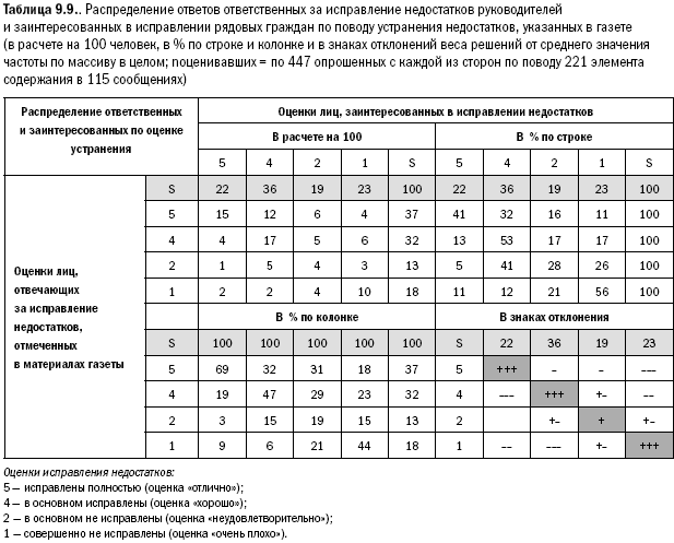 Часть III Решения об изменении социальной реальности Глава 9 Поле решений в структуре информации Общая картина В проекте «Общественное мнение» применялся довольно высоко стандартизированный инструментарий по ряду параметров, одним из которых была «сфера общественной жизни», освещаемая в материалах единственной общегородской газеты, являющаяся предметом проблемного мнения журналиста, внештатного автора, руководителей городских и районных органов власти, населения в целом, частей населения. К последним относились участники собраний трудовых коллективах города за три месяца, выступавшие на этих собраниях, выступавшие на собраниях избирателей в предвыборной кампании, писавшие письма в местные и центральные органы власти и редакции масс-медиа, побывавшие на приеме у депутатов местных Советов и у работников местных руководящих органов. Мнение этих людей по тем же проблемам выявлялось методом «контент-анализа» их писем, бесед, выступлений и сопоставлялось с высказанным при опросе. Кроме того, были взяты два важнейших канала «внутри» властной, бюрократической машины: 1) канал «трансмиссии общественного мнения» внутри властных структур, зафиксированный перепиской между органами власти (горком, райкомы, горисполком, райисполкомы и т. п.), насчитывавшей 1720 суждений о мнениях жителей города по этим же проблемам наряду и с самими «первозданными» мнениями; 2) два канала заседаний и совещаний работников руководящих органов, на которых присутствовали депутаты Советов, принимавшие население, а с другой стороны, те заседания, на которых присутствовали работники городских и районных органов власти, принимавшие население по тем же вопросам (темы этих заседаний зафиксированы). Был проделан контент-анализ 452 решений местных органов власти по городским проблемам. В первую очередь полученная информация была выровнена во всех тождественных по сферам жизни исследованиях (их у нас было за 35 лет более 60, но мы отобрали из них только 23). Затем мы определились дополнительно со стабильностью информации во времени, сопоставив два открытых вопроса об актуальных проблемах жизни Таганрога в 1969 г. и Петербурга в 1999 г. Контент-анализ записей респондентов был проведен адекватно выровненным по сферам и проблемам инструментарием лично автором. Стало возможно увидеть сразу в одной таблице корреляцию прямого и обратного потоков информации в контуре «органы власти – масс-медиа – население» и друг с другом, и с решениями власти, и с внутренним потоком информации в бюрократическом аппарате, а в точке волнующих население проблем и в динамике за чистых 30 лет. Мы выделили 15 укрупненных сфер внутренней жизни территориальной агломерации, на основании эмпирически зафиксированных тем информационных потоков и от власти к населению и от населения к власти: 1 – промышленность, экономика, финансы; 2 – жилье, гражданское жилищное строительство, транспорт, связь, благоустройство города; 3 – сфера обслуживания населения, коммунальное и бытовое обслуживание, торговля промышленными и продовольственными товарами; 4 – сфера проведения свободного времени, отдых людей; 5 – работа учреждений культуры, просвещения, здравоохранения, различных уровней образования; 6 – литература и искусство; 7 – работа органов печати, радио и ТВ, СМИ в целом; 8 – идеологическая и религио