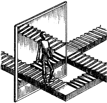 ДУАЛЬНОЕ ЗЕРКАЛО Реальность проявляет себя в двух формах: физической, которую можно потрогать руками, и метафизической, лежащей за пределами восприятия. Обе формы существуют одновременно, взаимно проникая и дополняя друг друга. Дуализм выступает как неотъемлемое свойство нашего мира. Многие вещи имеют свою противоположную сторону. Представьте себя стоящим перед зеркалом. Вы сами выступаете в качестве реально существующего физического объекта. А ваше отражение, не имея материальной субстанции, является мнимым, метафизическим, но в то же время оно так же реально, как и сам образ. Весь мир можно представить в виде гигантского дуального зеркала, по одну сторону которого лежит физическая Вселенная, а по другую простирается метафизическое пространство вариантов. В отличие от ситуации с обычным зеркалом материальный мир выступает в качестве отражения, образом которого служит намерение и мысли Бога, а также всех живых существ — Его воплощений. Пространство вариантов является своего рода матрицей, шаблоном, по которому происходит «кройка», «шитье», а также «демонстрация мод» — движение всей материи. Там хранится информация о том, что и как должно происходить в материальном мире. Число различных потенциальных возможностей бесконечно. Вариант представляет собой сектор пространства, где содержатся сценарий и декорации, то есть траектория и форма движения материи. Другими словами, сектор определяет, что в каждом отдельном случае должно происходить и как выглядеть. Таким образом, зеркало делит мир на две половины: действительную и мнимую. Все, что обрело материальную форму, находится на реальной половине и развивается в соответствии с законами естествознания. Наука, а также обыденное мировоззрение имеют дело лишь с тем, что происходит в «действительности». Под действительностью принято понимать все, что поддается наблюдению и прямому воздействию. Если отбросить метафизическую сторону реальности и принимать во внимание только материальный мир, тогда деятельность всех живых существ, включая человека, будет сводиться к примитивному движению в рамках внутреннего намерения. С помощью внутреннего намерения, как известно, цель достигается путем прямого воздействия на окружающий мир. Чтобы добиться чего-то, необходимо предпринять определенные шаги, потолкаться, подвигать локтями, в общем, проделать конкретную работу. Материальная действительность реально ощутима — она мгновенно реагирует на прямое воздействие, и это создает иллюзию, что только так можно достичь каких-либо результатов. Однако в рамках материального мира круг реально достижимых целей сильно сужается. Здесь приходится рассчитывать только на то, что имеется в наличии. Все упирается в средства, которых обычно не хватает, и возможности, которые весьма ограниченны. В этом мире абсолютно все проникнуто духом соперничества. Слишком многие хотят достичь одного и того же. А в пределах внутреннего намерения этого на всех, конечно, не хватит. Да и откуда возьмутся условия и обстоятельства, необходимые для достижения цели? Вот оттуда и возьмутся — из пространства вариантов. По ту сторону зеркала всего в избытке, причем безо всякой конкуренции. Товара в наличии нет, но вся прелесть в том, что можно выбрать любой, словно из каталога, и сделать заказ. Рано или поздно заказ буд