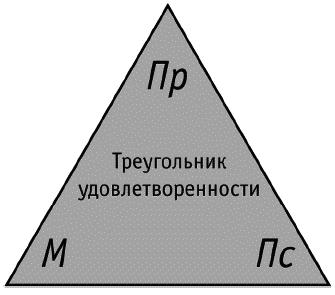 Схема 1.1.10 Разрешение конфликта Организационная конфликтология различает управление конфликтом и разрешение его. Условия успешного разрешения конфликта таковы: ? исчерпание инцидента = обеспечение стабильного эмоционального состояния участников в данной ситуации; ? неисчерпанный инцидент – угроза напряжения и поиска повода (другой конфликтной ситуации) для сбрасывания «паров»; ? контроль за элементами конфликтной ситуации путем установления баланса противоречивых потребностей и интересов = по сути, это профилактика будущих инцидентов. Что будет, если, исчерпав инцидент, мы оставили без изменений конфликтную ситуацию? При исчерпании инцидента конфликт не может быть исчерпан: на основе той же конфликтной ситуации могут возникнуть новые инциденты, а значит – новые конфликты. Поэтому неразрешенный конфликт называют еще вялотекущим или латентным. Останется угроза новых инцидентов и новых конфликтов. В силу сказанного разрешение конфликта (в отличие от управления им) подразумевает, что все стороны остались в удовлетворенном состоянии – то есть не осталось внутреннего напряжения, способного вылиться в инцидент. Ключевой вопрос – насколько возможно достижение полной удовлетворенности сторон? Схема 1.1.11 Треугольник удовлетворенности Успешное разрешение конфликта подразумевает, что все стороны остались удовлетворенными предложенным решением. При анализе конфликтной ситуации важно провести проверку выбранного варианта решения на предмет удовлетворенности каждой из сторон. Удовлетворение требует ответа на глубинные потребности, а не только достижения материально ощутимого результата. Выделяют три компонента удовлетворенности (рис. 3). Психологическая удовлетворенность: удовлетворение психологических потребностей. Это уровень разрешения внутреннего конфликта участников – чтобы «не осталось осадочка»…