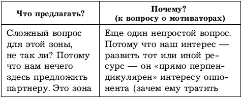 Приступим к описанию предлагаемой технологии. Шаг 1 (универсальный). Снятие предубеждения. Формирование мотивацииСмысл – сделать так, чтобы партнер захотел услышать то, что мы хотим сказать. То есть здесь надо сработать с первым законом убеждения, используя подстройку, самоподачу и подачу темы обсуждения в терминах ключей мотивации. Что полезно: – «ввинтить» интригу: «У меня предложение, которое не может не заинтересовать вас…»; – заявить о цели визита (по сути, это формулировка позиции): «Я пришел обсудить идею, которая позволит…». Итог: получить и зафиксировать наличие интереса. Как это работает в нашем примере: просим вас сразу заметить, что этот этап занимает у главного героя большую часть времени переговоров. Мы просто напомним ключевые фразы, которые работают на самоподачу и подачу темы (табл. 9). Таблица 9 Ключевые фразы убеждения (на примере фильма) ![]() В следующем разделе книги мы подробно остановимся на том, как же именно стоит заявлять о цели своего визита. А пока – следующий шаг… Шаг 2. Заявление своего интересаСвой интерес – это то, каких действий, какого решения вы ожидаете от партнера по итогам переговоров. Напомним, что способность спокойно проговорить свой интерес, во-первых, повышает кредит доверия, во-вторых, работает на мотивацию к взаимодействию. Особенно если мы заявили интерес, который реален для нас и посилен для партнера. Вопрос: почему партнер не захочет использовать эту информацию против нас? Потому что: – мы не вызываем негативных эмоций (мы нивелировали их на первом шаге); – мы заинтриговали партнера, описав цель визита в терминах выгоды и намекнув на то, что его интерес также будет учтен; – мы предлагаем то, что может быть интересно ему… Как это работает в нашем примере: