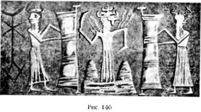 На некоторых цилиндрических печатях, найденных археологами, боги изображены рядом с входом в некие подземные сооружения, похожие на копи или шахты. На одном из рисунков мы видим прибытие Эа в страну, где Гибил находится на поверхности, а еще один бог, стоя на четвереньках, работает под землей (рис. 148).