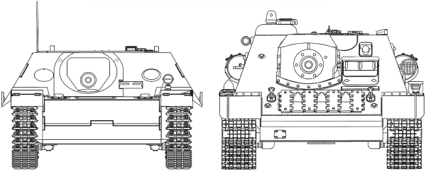 ЗАКЛЮЧЕНИЕ Итак, как это уже упоминалось выше, только Германии в ходе Второй мировой войны удалось создать целое семейство самоходных артиллерийских установок – истребителей танков, объединенных единым замыслом и концепцией применения. Разработанные машины составляли всю гамму самоходок – тяжелых, средних и легких. На этом фоне уже не важно, что «Ягдтигр» был явно лишним – роль тяжелого истребителя танков была вполне «по зубам» «Ягдпантере». Хотелось бы подчеркнуть, что стартовые условия у немцев были абсолютно одинаковыми с таковыми у других стран-участниц Второй мировой войны. Все начинали с нуля, имея за плечами лишь ограниченный опыт довоенных опытно-конструкторских работ. Однако конкурировать с Вермахтом в плане оснащения своих войск полностью бронированными истребителями танков смогла только Красная Армия. Поскольку ни у англичан, ни у американцев аналогов «ягдпанцерам» Вермахта не было, то сравнивать их можно (и нужно!) только с советскими САУ. При этом следует учитывать, что гамма советских истребителей танков, как и самоходных установок вообще, была существенно меньше немецких. Однако попробуем. Начнем в порядке убывания боевой массы – с «Ягдтигра». С чем же тут сравнивать? – спросит читатель. Конечно, «Ягдтигр» самая мощная и тяжелая САУ Второй мировой войны! Это бесспорно, но только в отношении серийных машин. Если же рассматривать этот вопрос шире, то у «Ягдтигра» появляются конкуренты. Причем речь здесь не идет о британской А39 «Тортойс» и американском Т28. Во-первых, эти машины классифицировались при создании как тяжелые штурмовые безбашенные танки, во-вторых, они вооружены слабее «Ягдтигра» 995– и 105-мм пушки соответственно) и в-третьих, обе были изготовлены в металле уже после окончания войны в Европе (Т28 – после окончания Второй мировой войны вообще). Единственное, что их объединяет с «Ягдтигром», – это масса, у «Тортойса» – 79, а у Т28 аж 90 т! Между тем имелась боевая машина, реально построенная задолго до «Ягдтигра» и значительно более близкая ему по тактико-техническим характеристикам. Речь идет о советской самоходке СУ-100Y. ![]() Самоходная артиллерийская установка СУ-IOOY Она была разработана на базе опытного тяжелого танка Т-100 в 1940 году. В ряде изданий упоминается об участии этой САУ в боях за Москву поздней осенью 1941 года. При массе в 64 т СУ-IOOY была вооружена 130-мм морской пушкой Б-13, имевшей близкие к немецкой Рак 44 баллистические характеристики. По компоновке обе САУ также были аналогичны – и у той и у другой бронированная рубка размещалась в средней части корпуса. Правда, бронирование СУ-100Y было заметно слабее, чем у «Ягдтигра». Вполне в духе 1940 года советская самоходка защищалась равностойко со всех сторон, и толщина брони не превышала 60 мм. Так что она стала бы легкой добычей «Ягдтигра» (и не только его одного) даже на дистанции 3,5 км. Впрочем, и «Ягдтигру» на этой дистанции тоже бы не поздоровилось. О бронепробиваемости Б-13 удалось найти только сведения о том, что на дистанции 4400 м ее бронебойный снаряд пробивал 40-мм броню. Пробил бы броню «Ягдтигра» 130-мм снаряд на дистанции 3,5 км или не пробил бы, гадать не будем. Ясно одно, даже в случае непробития брони попадание 36-кг снаряда, покинувшего ствол с начальной скоростью 870 м/с, обернулось бы для экипажа «Ягдтигра» последствиями, трудно совместимыми с жизнью. Ср