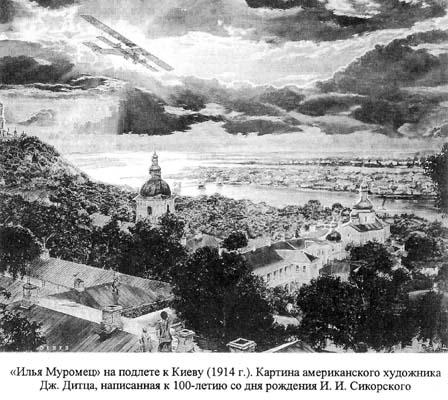 Первое далекое плавание «Ильи Муромца» До июня 1914 года на этих воздушных кораблях было совершено множество полетов. Все полеты были вполне удачными, но во всех случаях корабль не залетал дальше Гатчины[ 74 ]. Таким образом, полеты обычно представляли из себя прогулку над окрестностями Петрограда. Все полеты, кроме одного, упомянутого выше, были не более 2-х часов продолжительностью. Естественно поэтому, что и участники работ и большое число посторонних людей, с интересом следивших за полетами «Ильи Муромца», ожидали того, что большой воздушный корабль отправится в большое плавание. В середине июня было решено предпринять такой перелет. Целью путешествия был избран Киев. Расстояние от Петрограда до Киева по железной дороге около 1300 верст. Самые быстрые поезда проходили его в 26 часов.